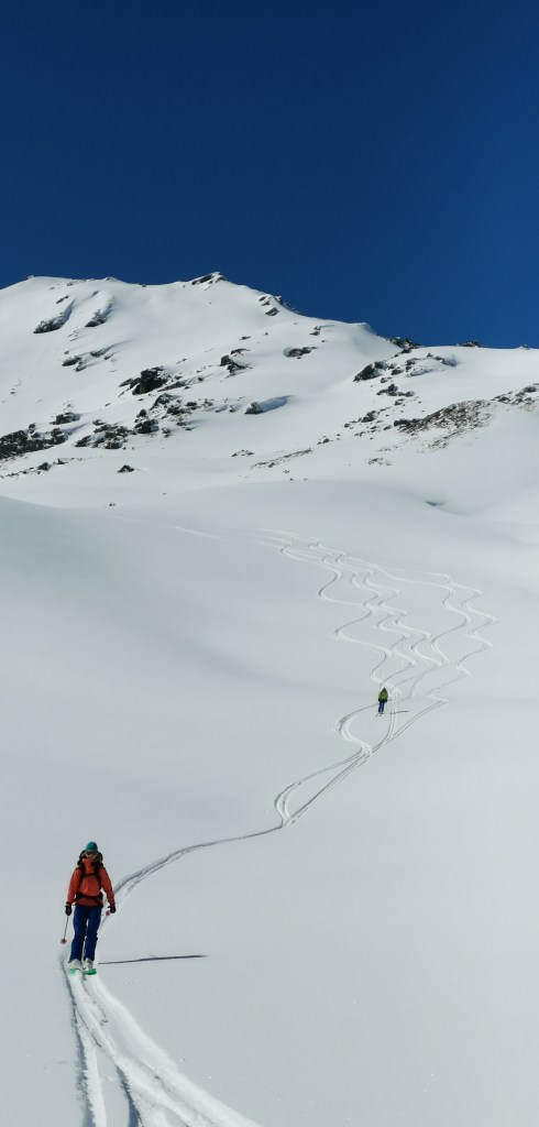 Either on single day tours or multi day hut-to-hut trips, I’ll design our days out to make the most of both the journey and the ski back down. Skis can also make ascending some of the highest alpine peaks easier and more enjoyable than in summer conditions, and for the more ambitious we can combine skiing with alpine climbing to reach more challenging summits.